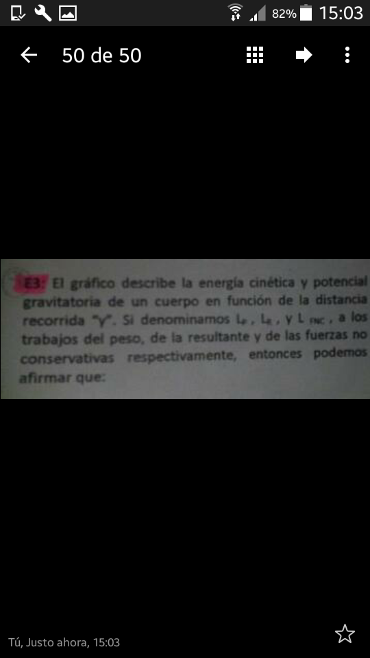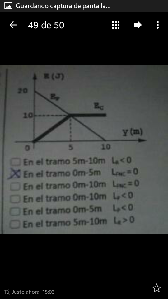 Calcula el trabajo realizado por el peso, las resultantes y las fuerzas no conservativas en cada tramo (de 0 a 5 y de 5 a 10).. Recuerda que el TRABAJO W=Emf-Emo,