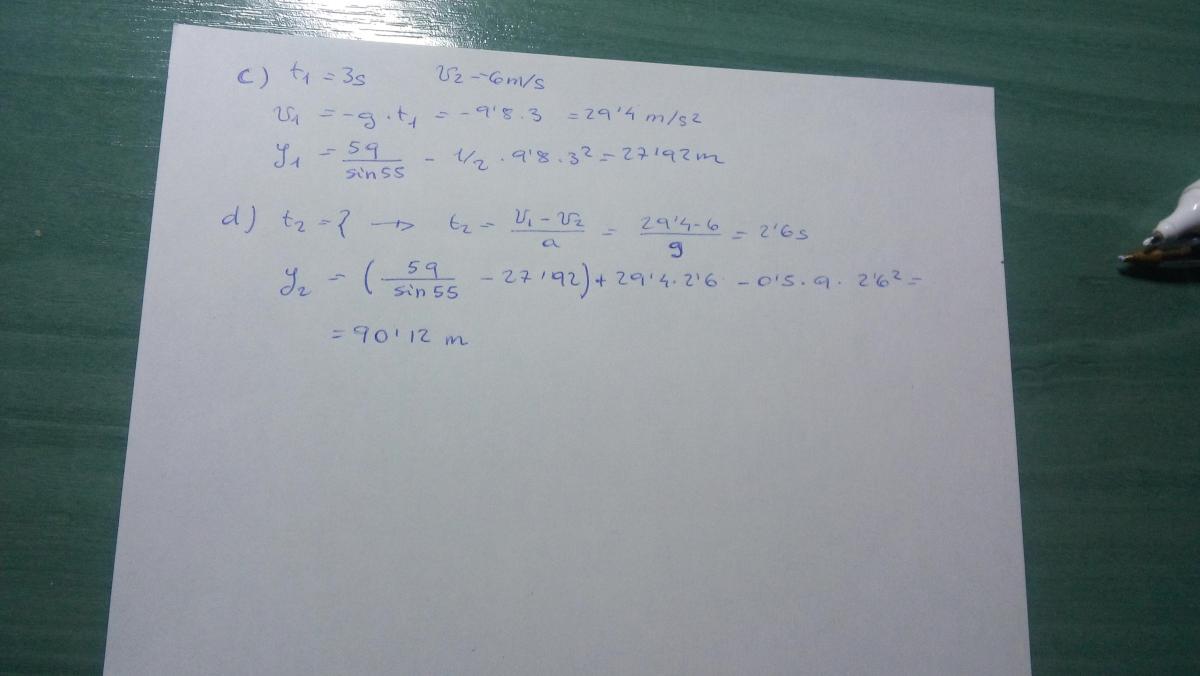 Ahora te toca hallar la distancia total que recorre en la rampa, por trigonometria... sen55= 59/d... d=59/sen55 =72,026 metros.