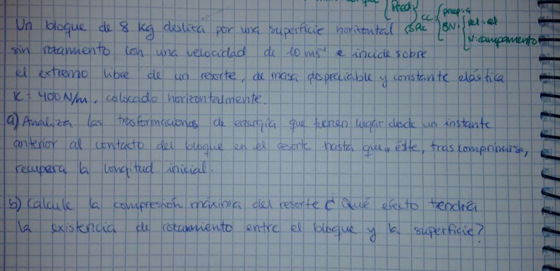 Se trata de plantear la energia mecácnia inicial que dependerá en exclusiva de su energía cinetica, Ec=(1/2)m.v²..