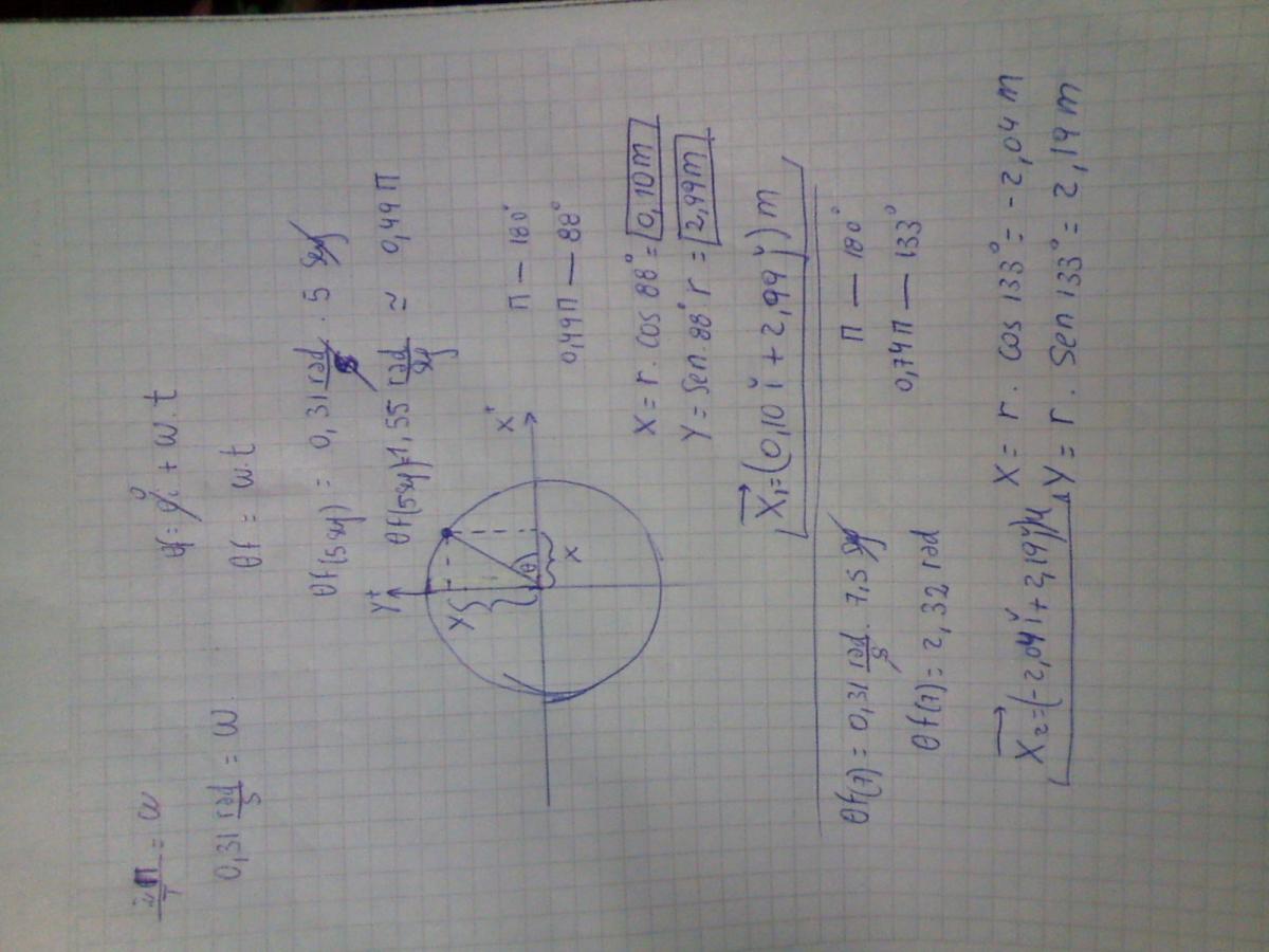 una partícula gira con rapidez constante en un circulo de 3 m de radio y completa una revolución en 20s. La partícula pasa por el punto O en t=0. Con respecto al origen O Halle la magnitud y dirección de los vectores que describen la posición en 5, 7.5, y 10s mas tarde.