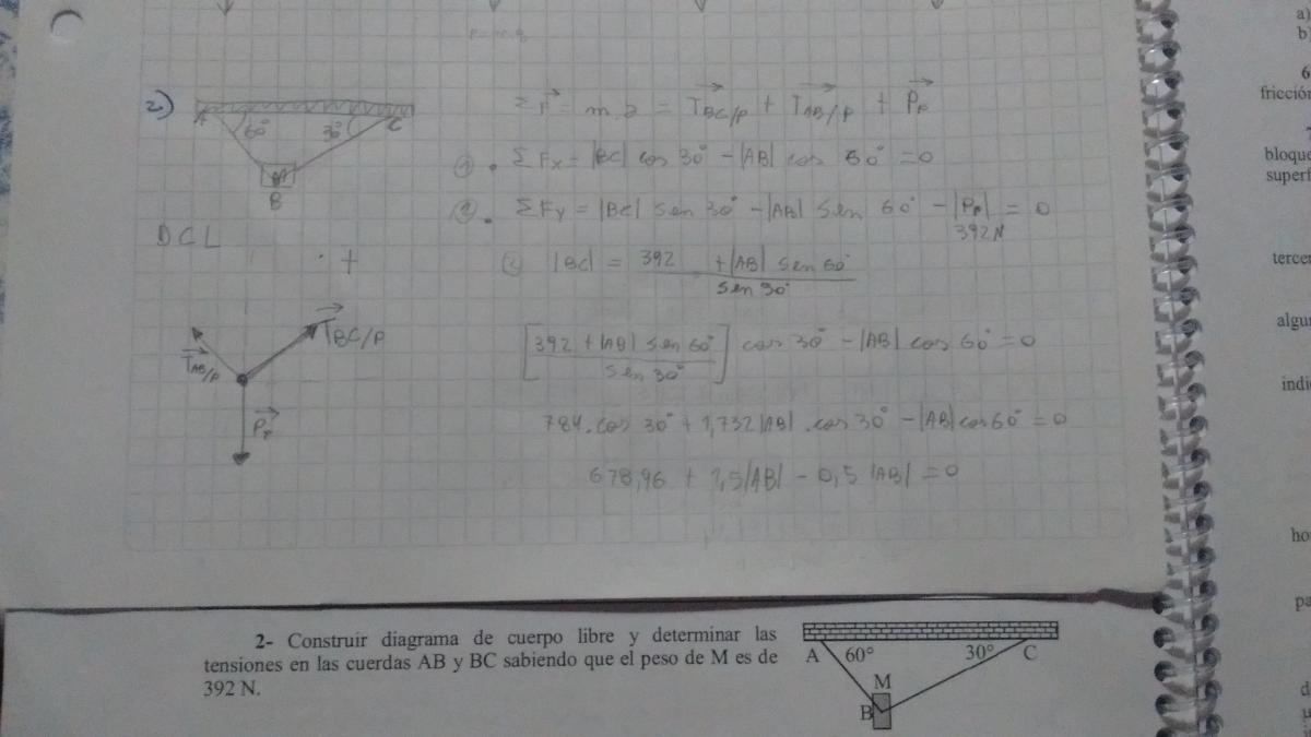 Hola me podrían ayudar con este problema lo estuve planteando pero según la respuesta la tensión ab=339,5N y la bc=196![]()