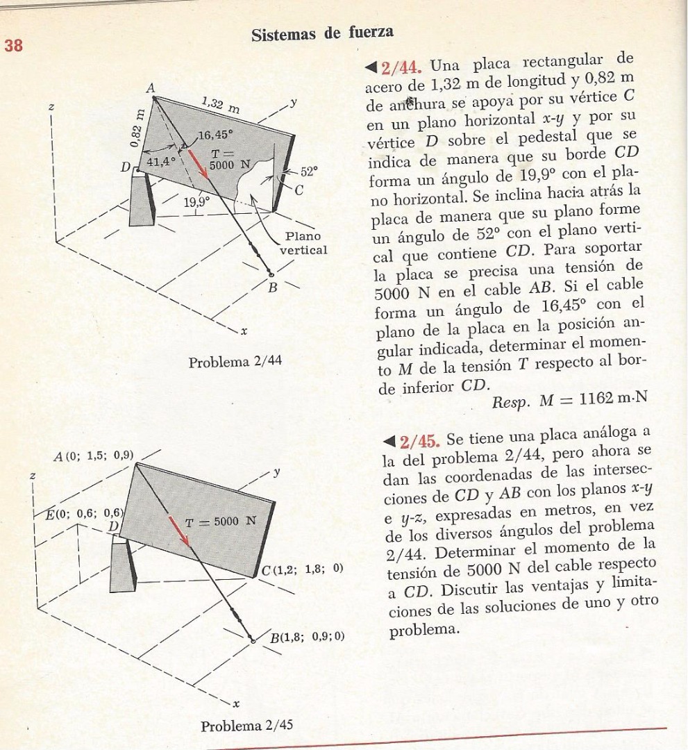 Profesor agradezco su colaboración para resolver el problema 2/44 del que adjunto foto . El problema es que necesito ayer el momento generado por un cable con tensión de 5000 N pero no puedo concebir el vector posición porque me faltan datos. Agradezco su colaboración.