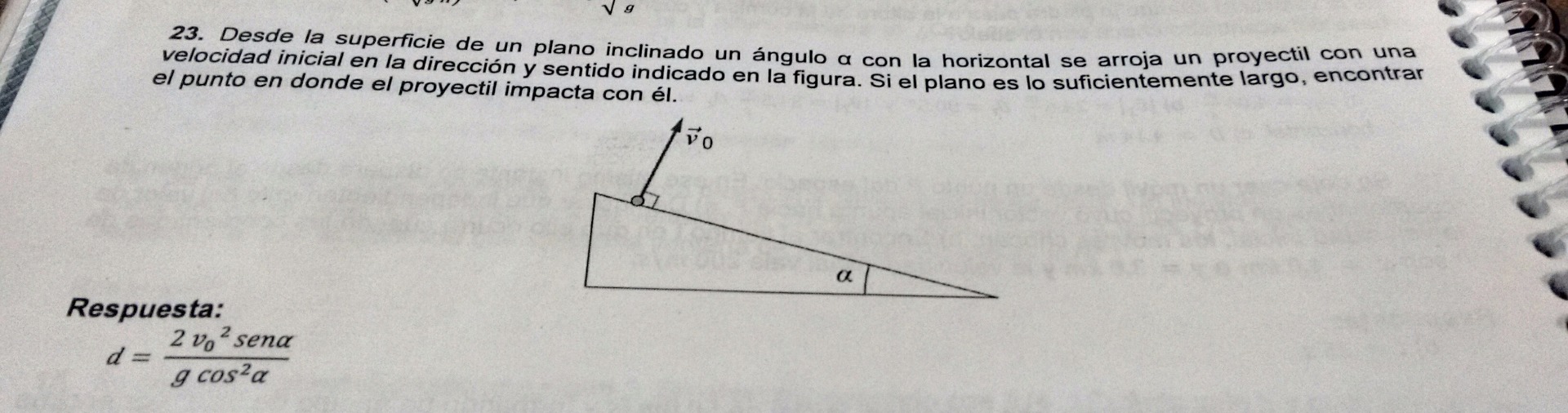 d)Y=0.5·gt²=0.5·10·0.2²=0.2j (m) X=V·t=2.09·0.2=0.42 i (m) Vector de posición r=0.42i+0.2j
