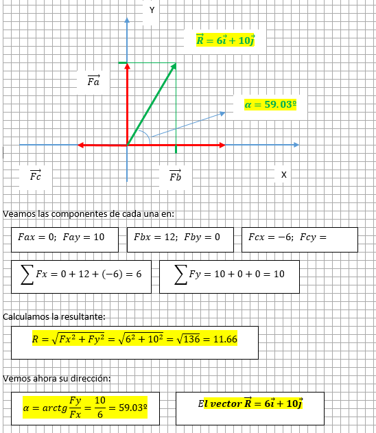 Tenemos 3 fuerzas, a, b y c. La fuerza A vale 10N y tiene sentido norte, la B vale 12N y tiene sentido este y la C vale 6N y tiene sentido oeste, ¿qué vale la fuerza total?