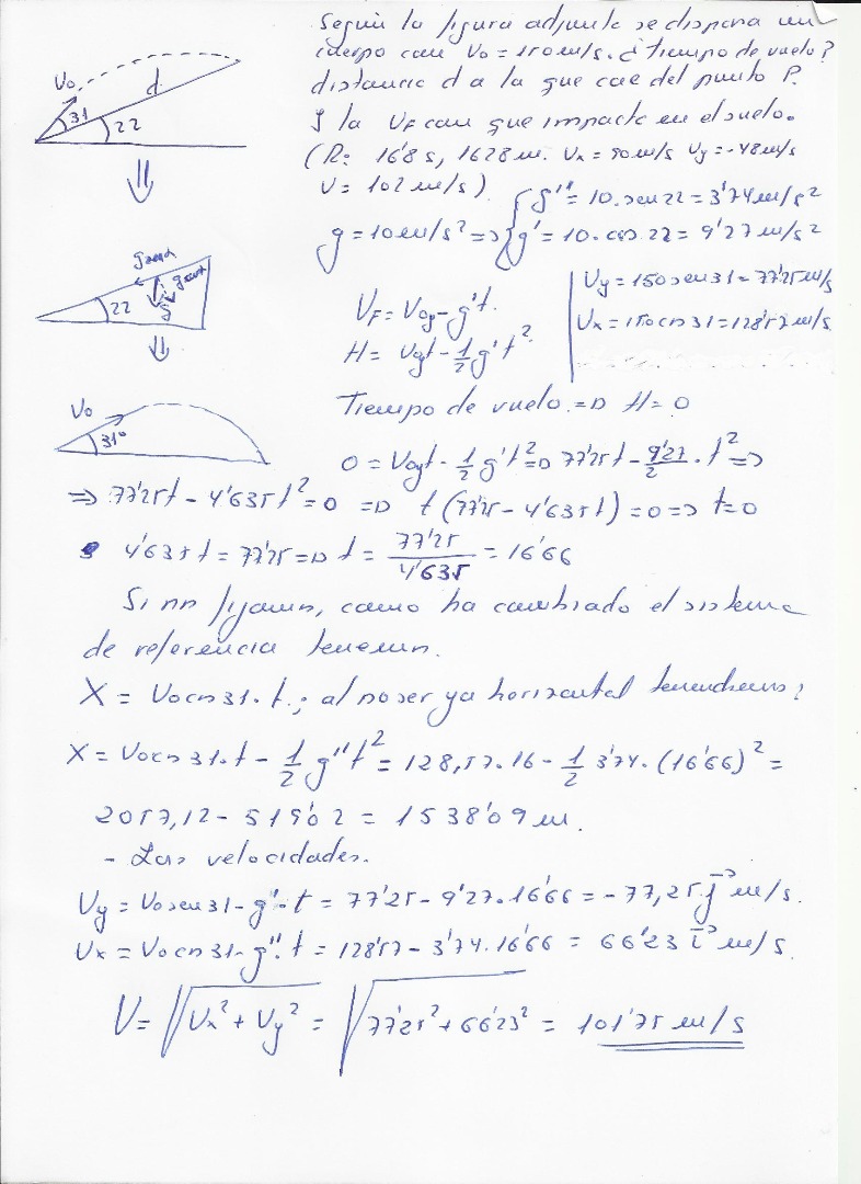 Utilizando como velocidad inicial de lanzamiento la calculado por Francisco G (Voy = 14,7)