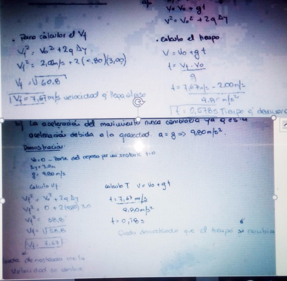 b) ¿ cambiaría la velocidad final, el tiempo de caída y/ o la aceleración del movimiento si la velocidad inicial, hubiese sido 0;0 m/s. JUSTIFICA.