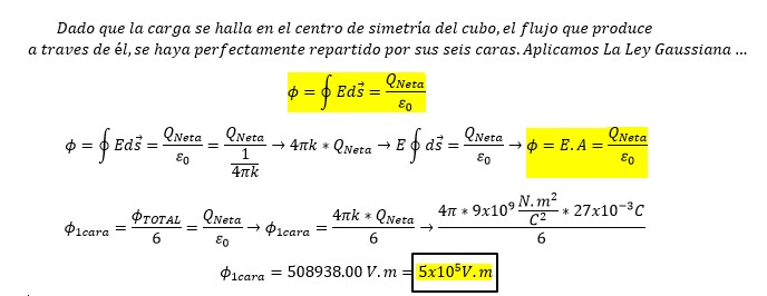 peter paan lo he hecho varias veces en la calculadora y no sale 5.10^5 4*π = 12,56 ; 12,56 * 9.10^9 = 1,130 *10^11 ; 1,130 *10^11 * 27 *10 ^-3 =3,053*10^9 ;3,053*10^9 /6 = 5,08 *10^8 .