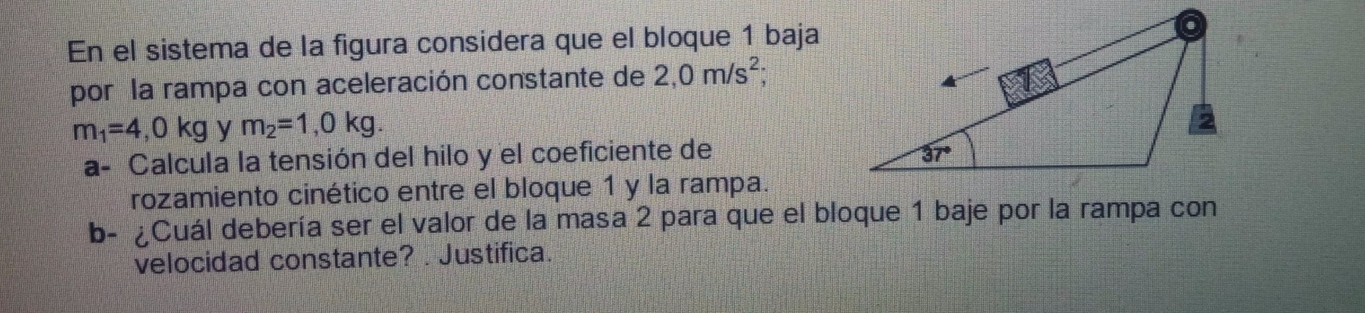 a) Bloque nº 1: Px=m·g·sen 37=4·10·sen 37= 24 N ;............ Fr=m·g·cos 37·μ=10·4·0.8μ=32μ N