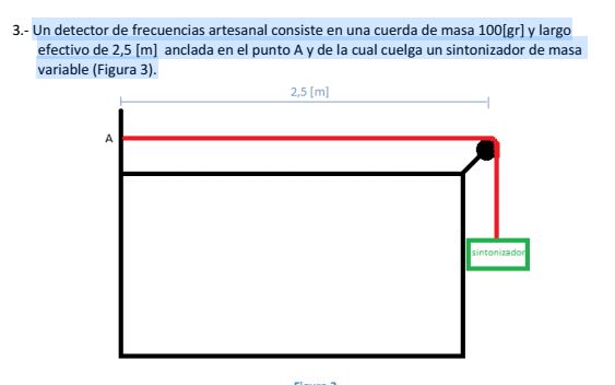 Un detector de frecuencias artesanal consiste en una cuerda de masa 100[gr] y largo