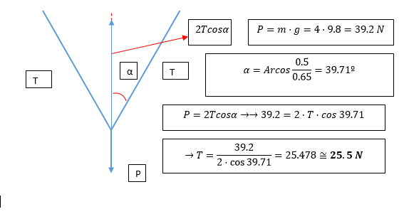 efectivo de 2,5 [m] anclada en el punto A y de la cual cuelga un sintonizador de masa