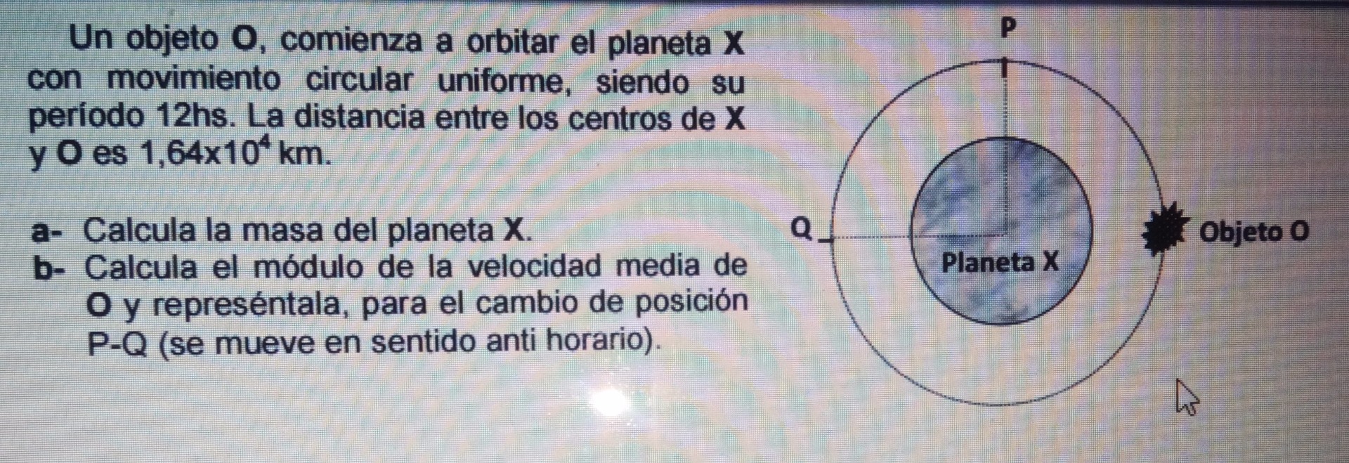 Este problema no es en realidad tanto de MCU, (aunque si tiene su parte, y son necesarios ciertos conocimientos), como de gravitación y satélites; problema muy típico de selectividad en casi toda España.