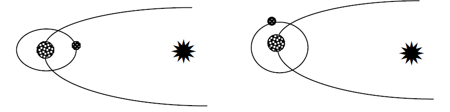 Suponga que las órbitas son circulares y determine la fuerza neta considerando las fuerzas ejercidas por la Tierra y el Sol sobre la Luna e indique en qué dirección apunta. Considere las