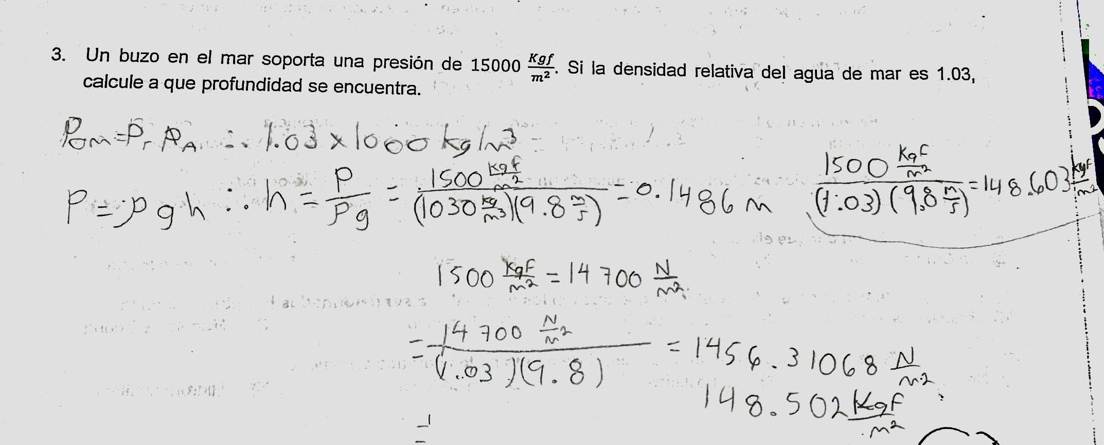 tengo pregunta en hidrostatica en donde nos pide la profundidad y ya hice el despeje y en dos problemas distintos nos da la presion en N/m^2 y en kgf/cm^2, ahora nos dan la densidad del agua de mar que es de 1.03 (sin unidad) en los problemas como reitero nos da la densidad en kgf/cm^2 por que se multiplica por 1000 (ya que es una constante).¿cuando se utliza la densidad en kgf/cm^2 y cuando se utliza la densidad sin unidades (1.03)?