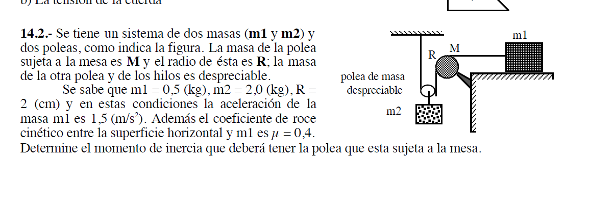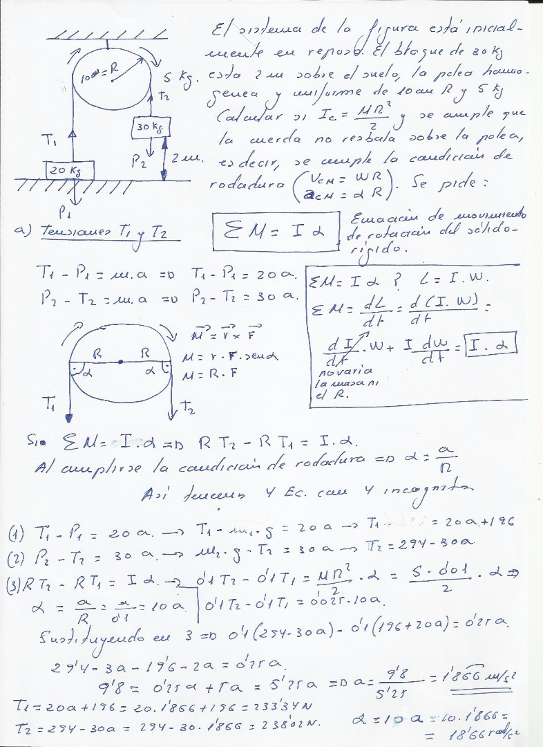 gracias, sirve mucho, pero en mi caso no se cual sera la aceleración de la polea ya que una de las masas incluye una polea movil entonces nose si se puede hacer la misma relacion de aceleraciones que en mrua que seria que la aceleracion de la masa 1 es el doble de la aceleracion de la masa 2
