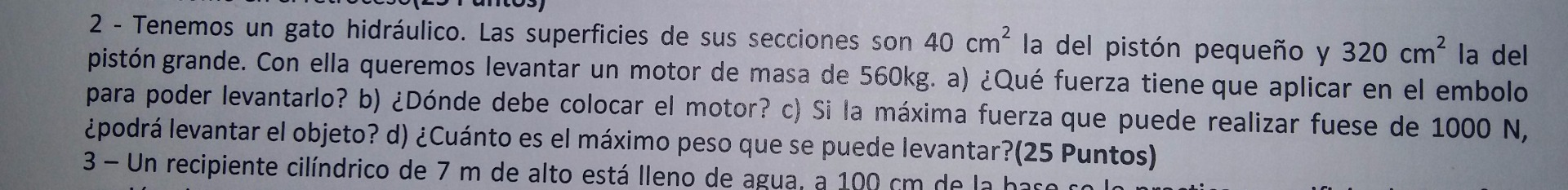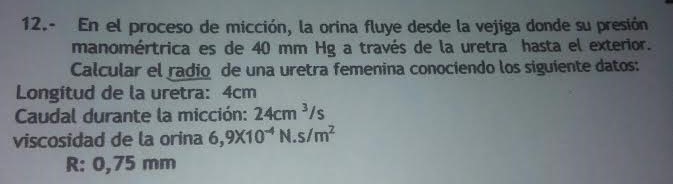 Hola unicoos!! necesito ayuda con este ejercicio por favor!!! no se que ecuación correspondiente a fluidos me podría ayudar a resolverlo, agradecería mucho si alguien pudiera ayudarme o guiarme para resolverlo! :)