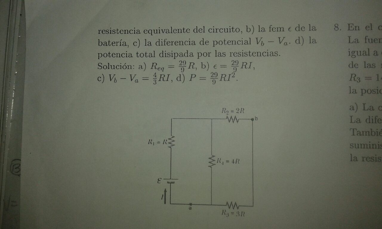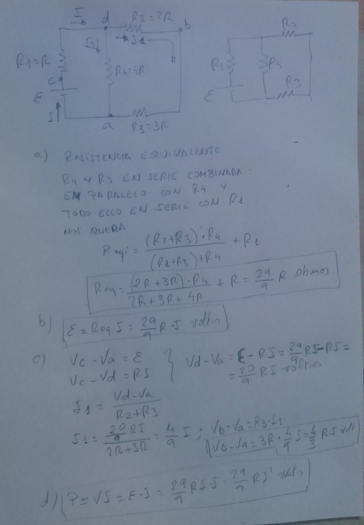 hay una parte del enunciado que no se ve ya que se encuentra en la pagina anterior, la cual dice considerar las respuestas en termino de resistencia R y una corriente I