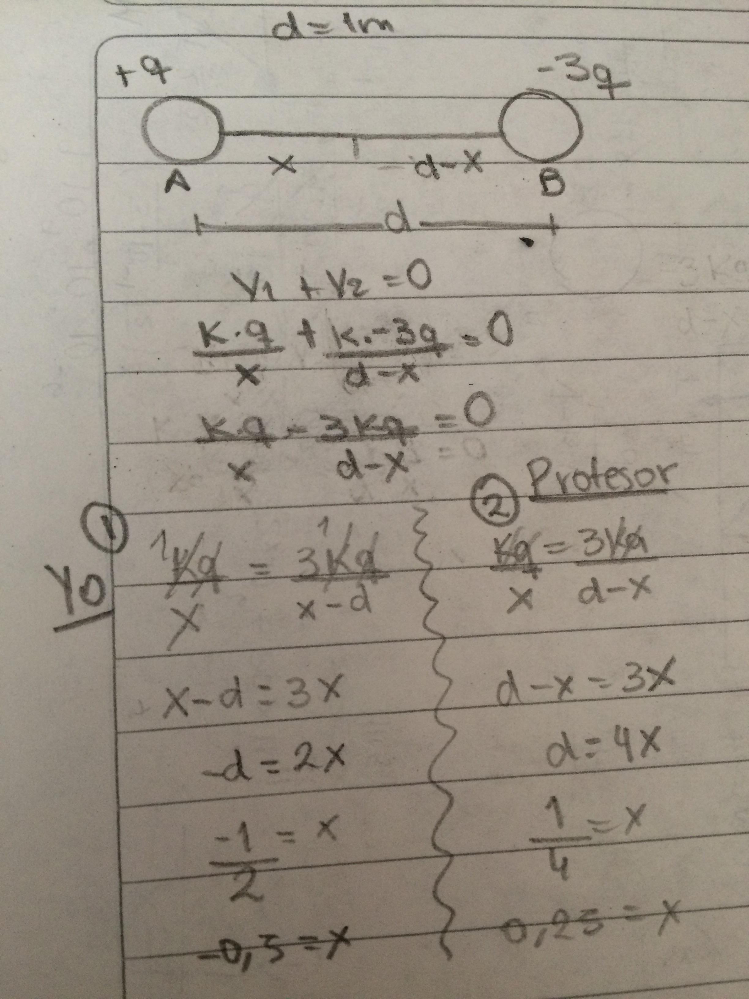 Quisiera saber si el numero "1" está bien resuelto porque si -3Kq/d-x pasa al otro lado con el signo cambiado y yo pienso que pasaría así: 3Kq/x-d) y en el numero "2" según mi profesor pasaría así: 3Kq/d-x. Yo quisiera saber por que no se cambia el signo de "d-x" a "x-d" si el número "2" supuestamente está bien. Muchísimas gracias">![]()