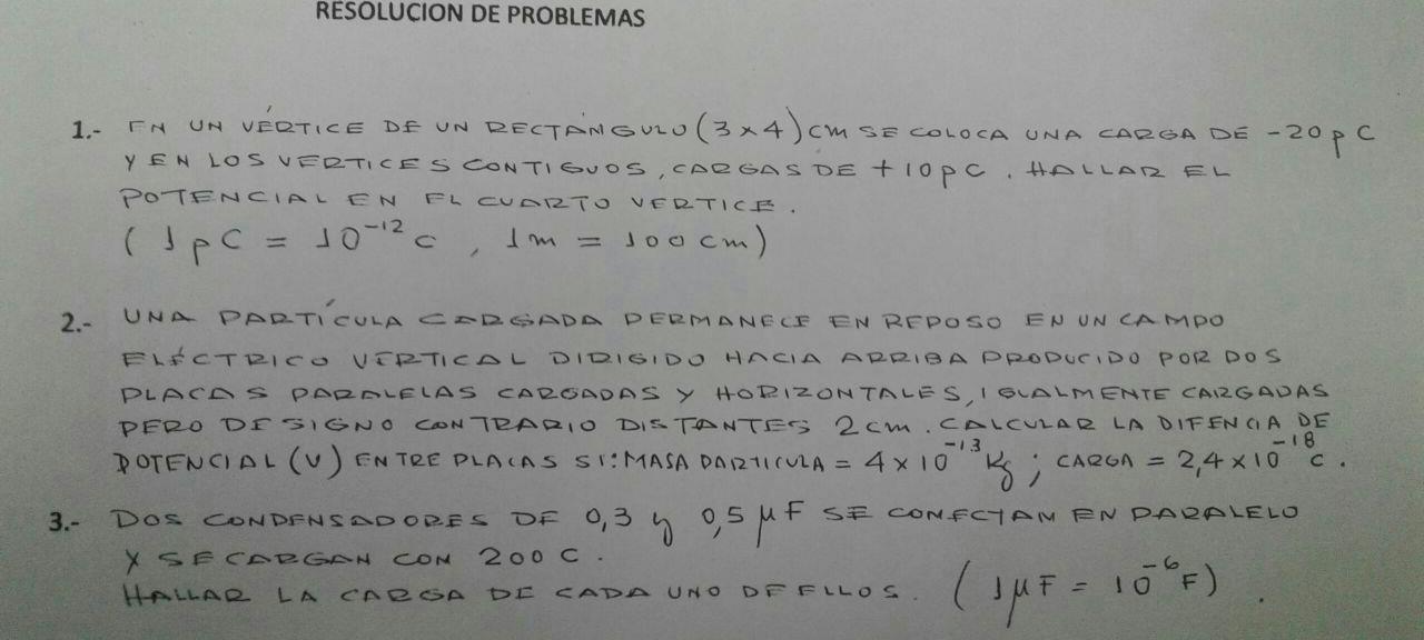 4º Vy=v-gt; Vx=at; si t=2v/g ==> Vy=-v=-10m/s; Vx=(2v/g).a=4 m/s, v=10'7 m/s