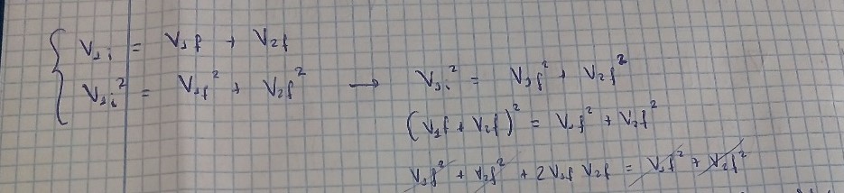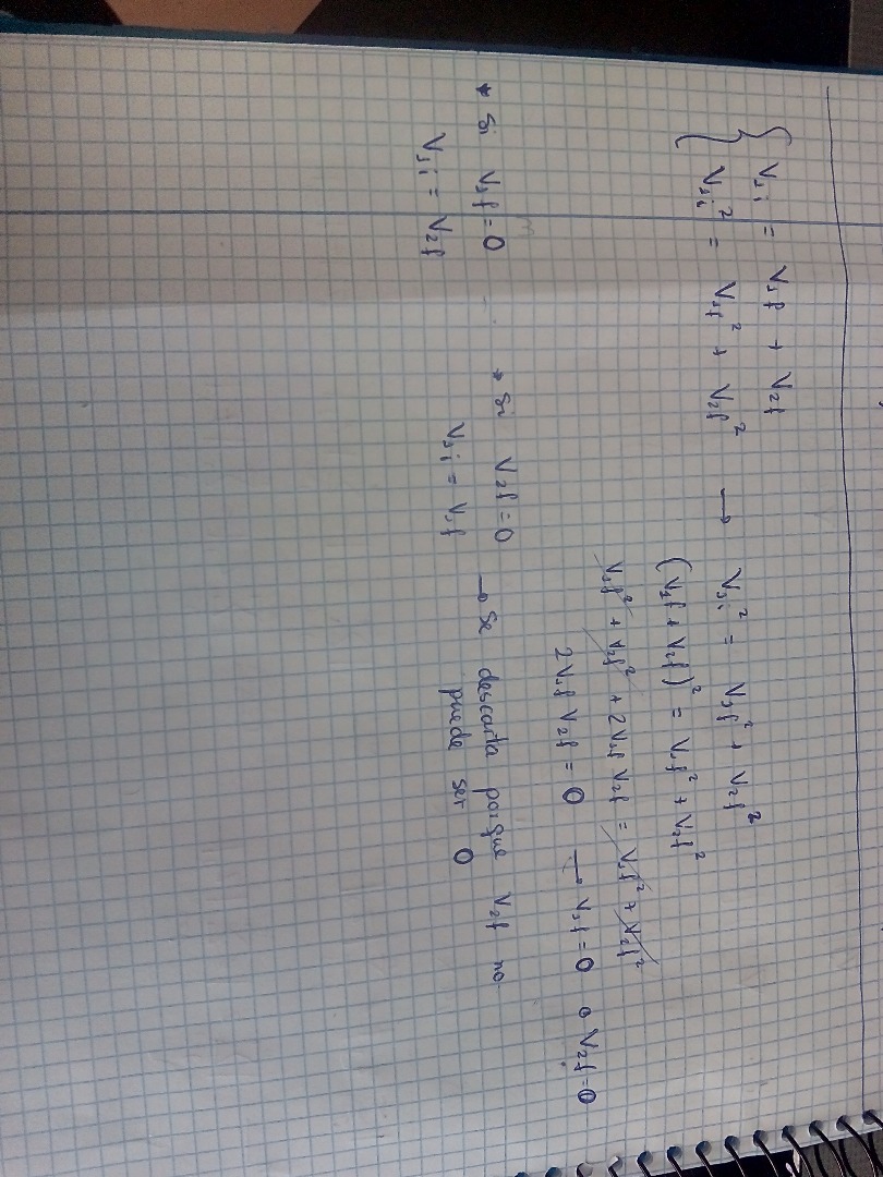 Ahora usa este valor de V1f en la primer ecuación y obtienes que V1i=V2f