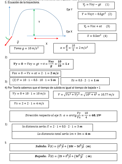 Se lanza una pelota verticalmente hacia arriba con una velocidad inicial de 10 m/s. El viento produce una fuerza horizontal constante sobre la pelota igual a la quinta parte del peso de ésta. Se pide: