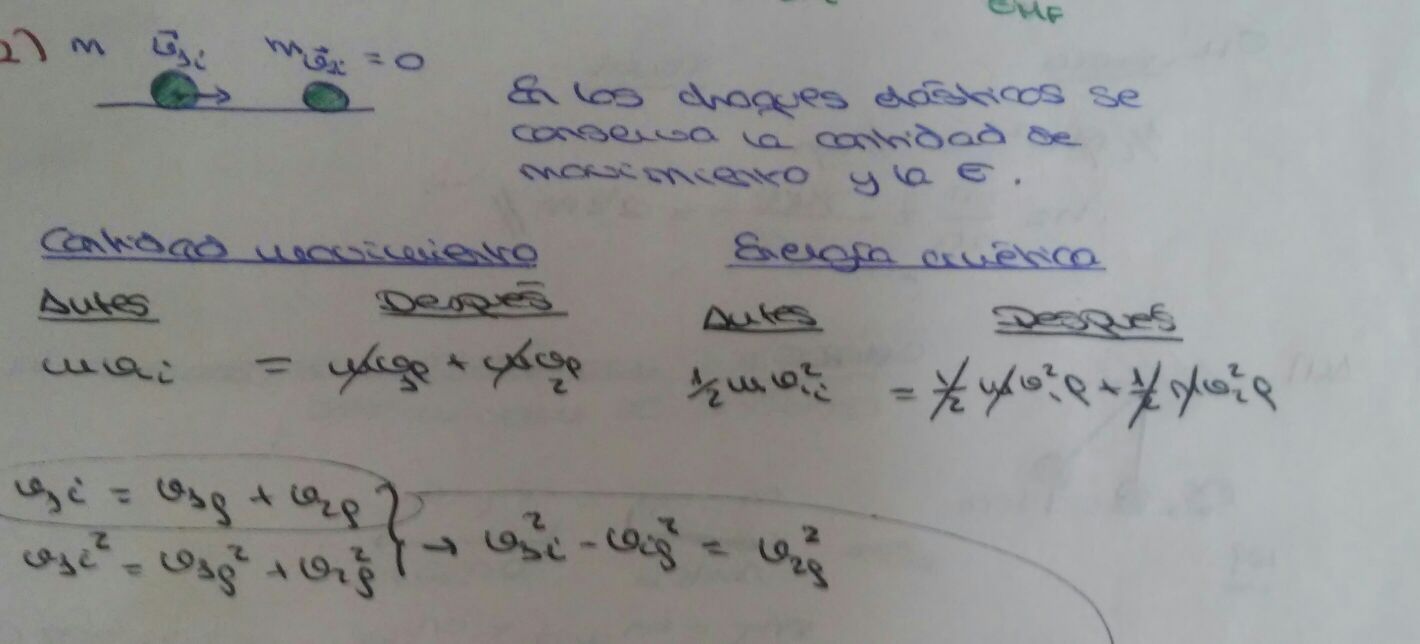 alguien me puede explicar como seguir el ejercicio? El enunciado es este : Una partícula con una velocidad v1i, choca elásticamente con otra inicialmente en reposo, ambas tienen la misma masa. Si el choque es unidimensional, encuentra las velocidades de las dos partículas después del choque.