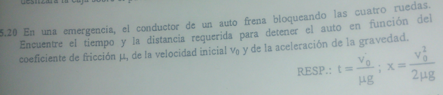 Fr=m·a→m·g·μ=m·a→a=gμ Aplicando cinemática tenemos: