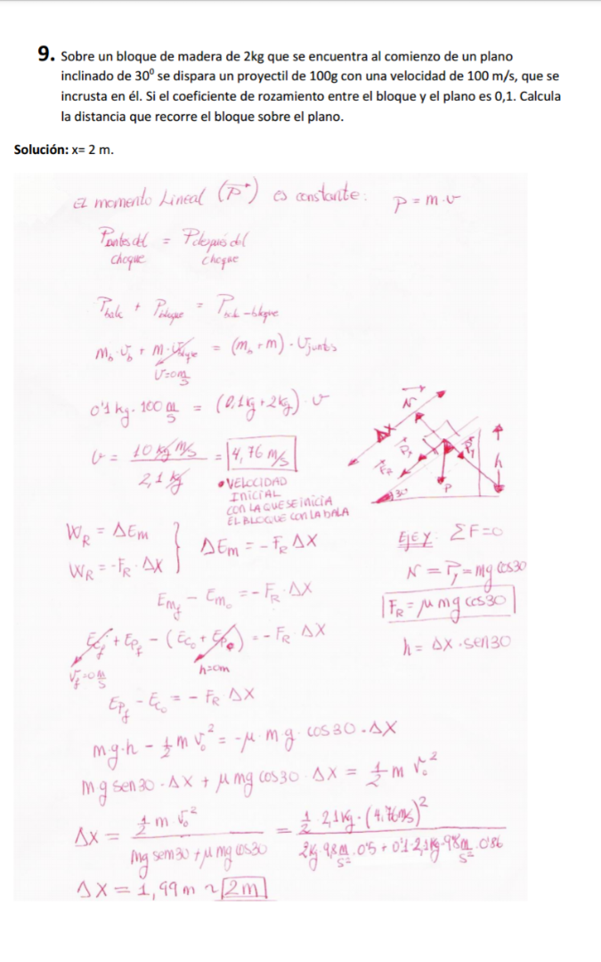 Hola! Una pregunta, porque en este ejercicio utiliza unas veces la masa del bloque y otras utiliza la masa del bloque y el proyectil?