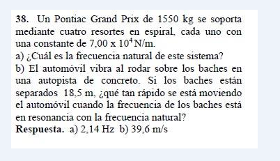 Ya he visto el vídeo referente al tema, y he probado a hacer algunos cálculos, pero creo que el problema es que hasta el momento sólo había resuelto problemas en los que un extremo del muelle está sujeto de forma fija a una pared o superficie. Sin embargo, en este problema, los dos extremos del muelle se desplazan, y es eso lo que me dificulta resolver el problema. No pido que lo resuelvan por mí, sólo que me ayuden a entender el problema y el procedimiento para resolverlo. Cualquier tipo de ayuda será muy apreciada. Gracias!!