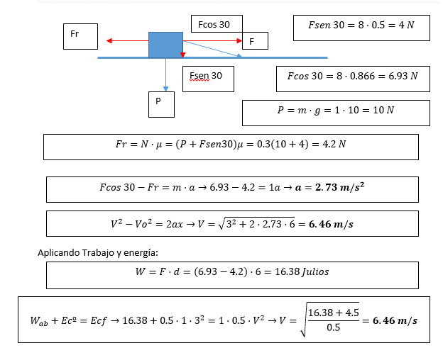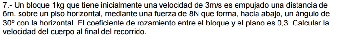 Hola Unicoos, me podeis este ejercicio, mi duda es que la formula para hacer el rozamiento en una fuerza con angulo es: μ(P-Fn) pero que tenga el angulo negativo me descoloca podriais resolverme el ejercicio. Por favor. (Es un ejercicio de Trabajo y Energía)