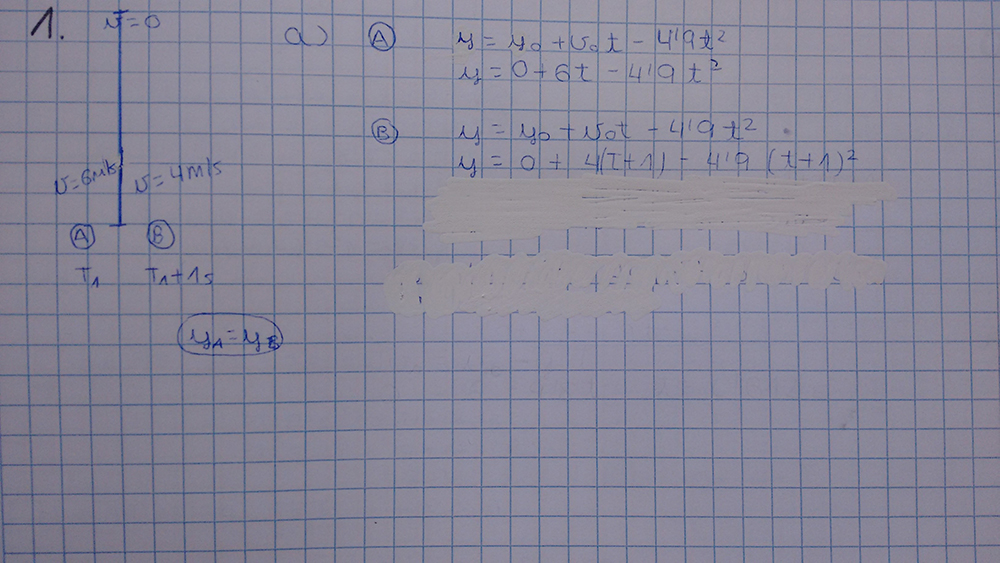 Lanzamos una pelota verticalmente hacia arriba con una velocidad de 6 m/s. Un segundo después, lanzamos otra pelota con una velocidad de 4 m/s en la misma dirección y sentido. Determina: