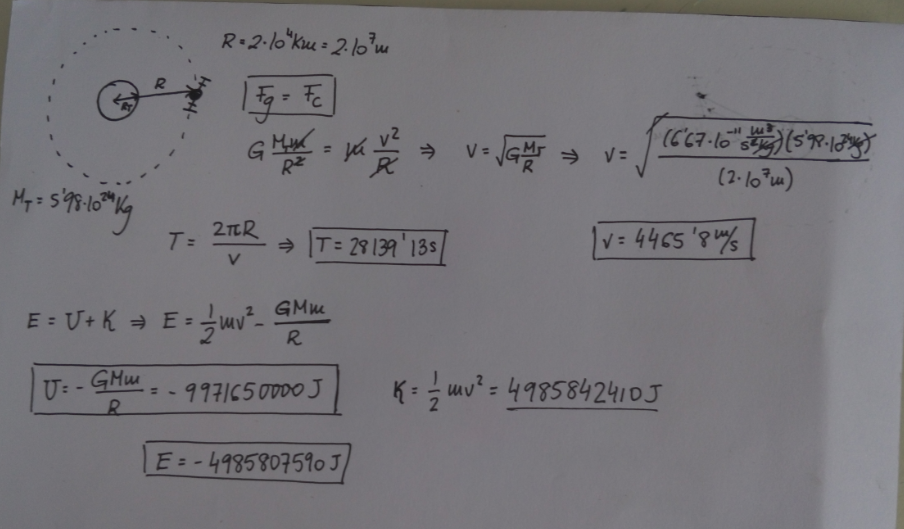 Un satelite artificial de 500 kg describe una orbita circular alrededor de la tierra con un radio de 2*10^4 km