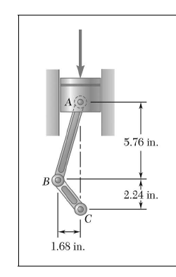 1.- Se sabe que la varilla de conexión AB ejerce una fuerza de 500lb sobre la manivela BC dirigida hacia abajo y a la izquierda a lo largo de la línea central AB. Determine el momento de la fuerza respecto de C.