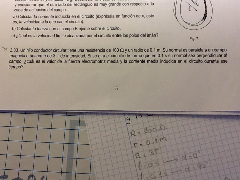 Hola! A ver... Qué hago para calcular la fuerza electromotriz en el 3.33? Me sé la fórmula, pero eso en física no suele ser suficiente... Además, he visto el vídeo de la espira cuadrada, que me ha servido para otro ejercicio y creo que por ahí van los tiros, pero llevo un buen rato dándole vueltas y no sale :(