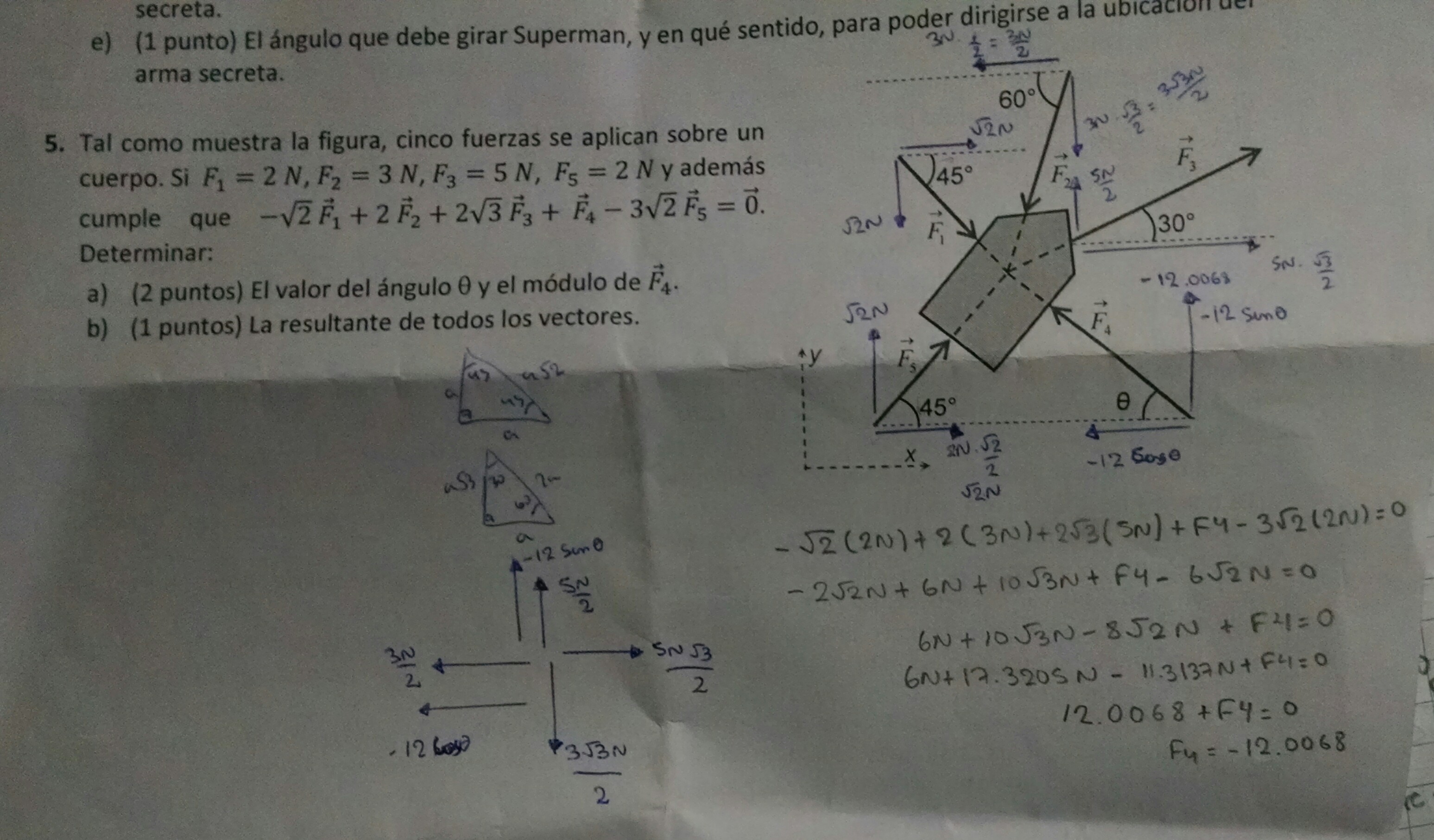 las soluciones deben ser a)r=-27,-27 b)13m/s a 230grados c)23m 200grados d)8.5 m/s2 a 200grados e)10m/s a 140grados