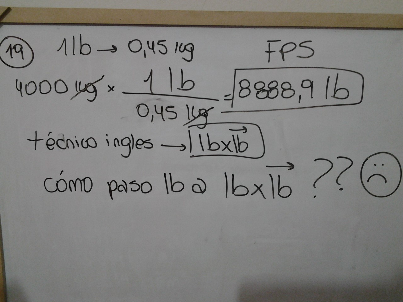 Este ejercicio también lo resolví , quería saber si tenia algún error y cuanto vale una lbxlb fuerza... EL ENUNCIADO ES " un horno produce 4000 toneladas de hierro por dia, expresar el valor en el sistema FPS Y TÉCNICO INGLES" ... gracias