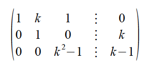 Reemplazas el valor del parámetro que tienes en tu enunciado (k = 2), y la primera matriz de nuestro desarrollo (a) queda:
