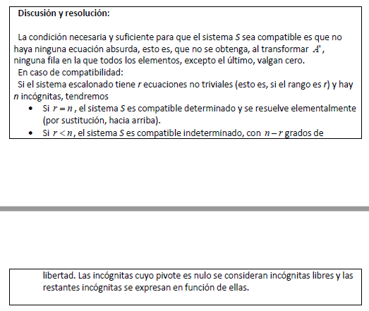 y tienes que el sistema es compatible indeterminado y admite infinitas soluciones,