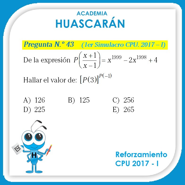 ( P(3) )P(-1) = reemplazamos valores = ( 4 )4= 256.