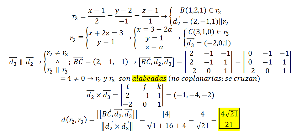 el segundo determinante es igual a cero, porque el segundo vector es igual al tercer vector,