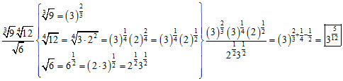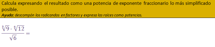 N/D = ( 2^(1/2) * 3^(11/12) ) / ( 2^(1/2) * 3^(1/2) ) = simplificamos =