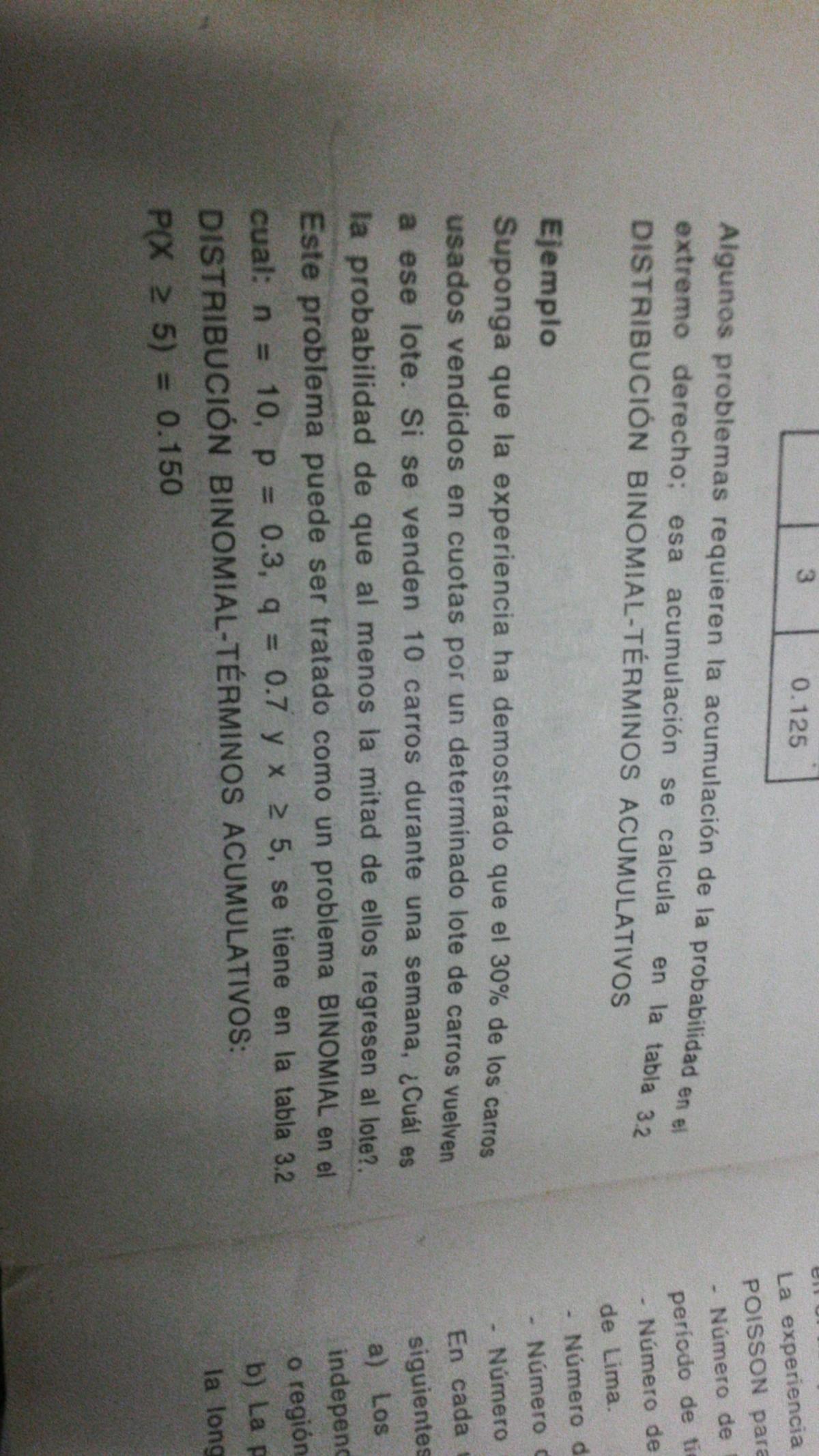 Cuando trabajas con distribuciones binomiales, como en este caso con población tamaño n = 10, probabilidad favorable p = 0,3 y, por lo tanto probabilidad desfavorable q = 0,7, pueden pedirte que calcules (llamamos F(k) = p(x >= k) a cada valor de la tabla acumulativa), van como ejemplos: