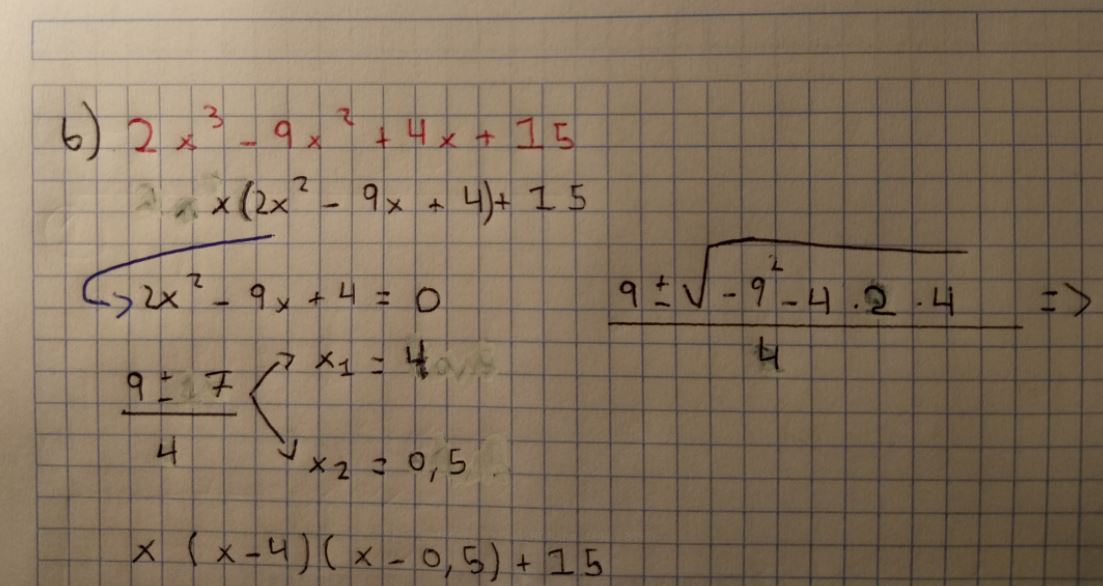 Tengo que encontrar las 3 Raíces de P(x)= 2 x3 - 9x2 +4x + 15