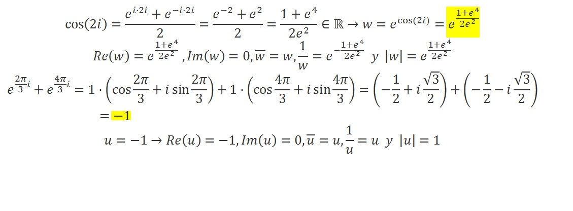 2) e^(2πi/3) + e^(4πi/3): me ayudaríais a encontrar lo que me pide??