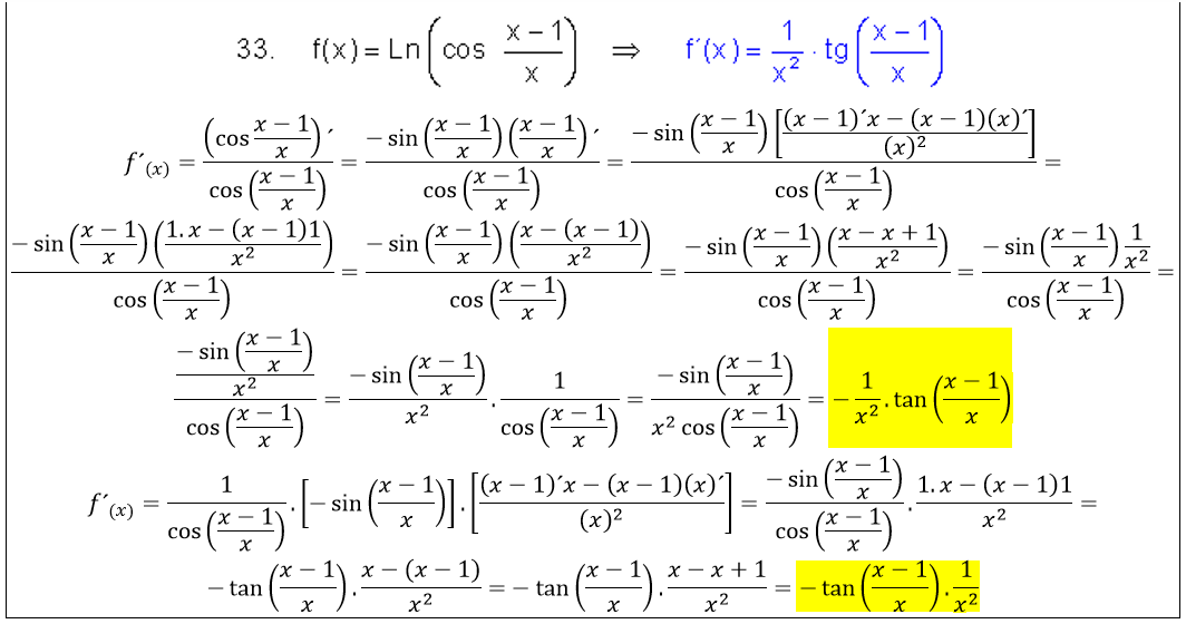 Encontre esta derivada en internet y no encuentro el error en mis procedimientos para llegar al resultado, si alguien lo ve me lo dice ;-)