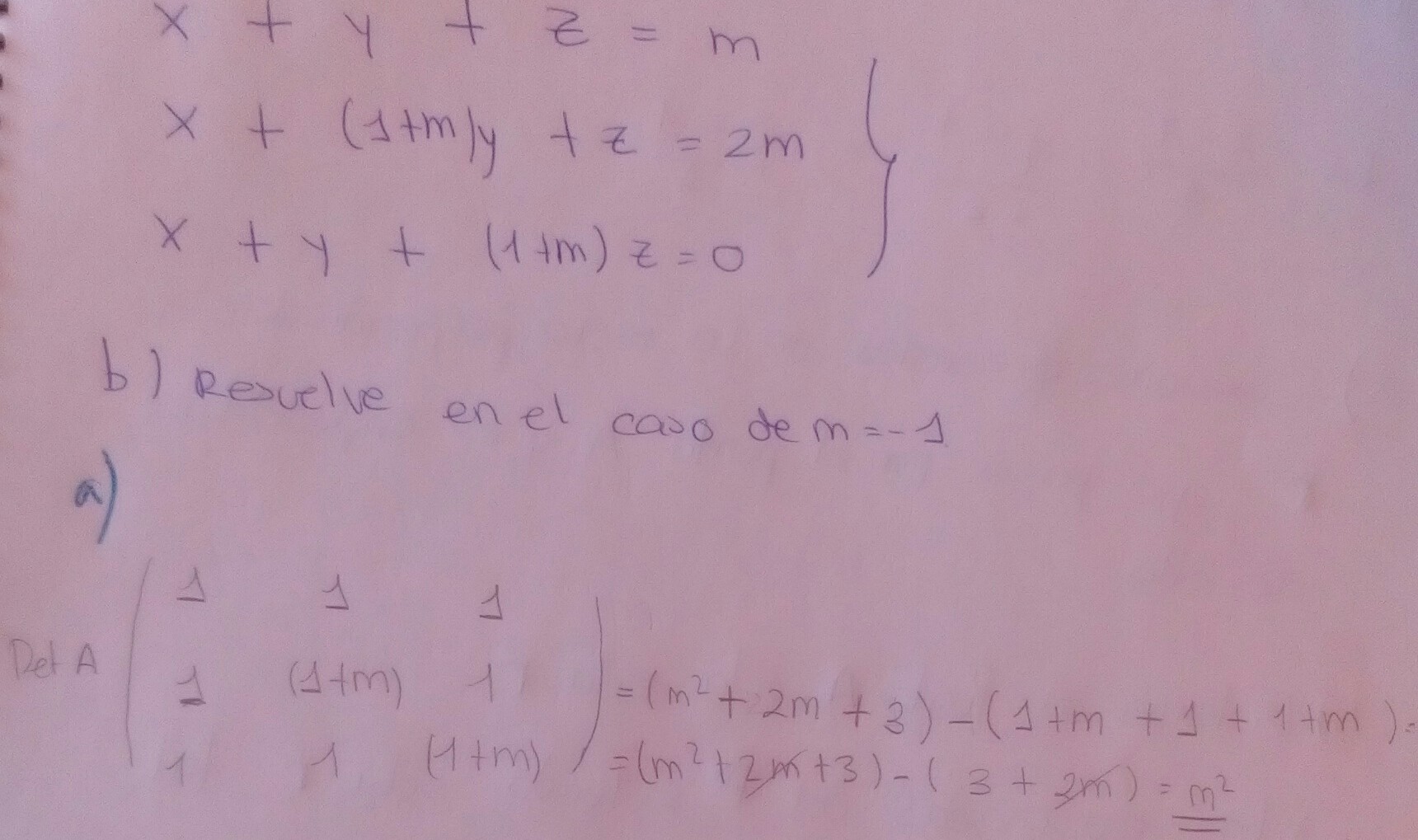 Por lo tando, la solución es que el m debe ser DISTINTO de cero, para que sea un SCD.