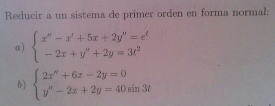 Tengo un problema que necesitaría ayuda porque no recuerdo como es que se hace. He intentado un procedimiento que he encontrado pero me van saliendo cosas muy raras. Es de sistema de ecuaciones diferenciales. Adjunto la imagen. Con saber como se hace el apartado a) tengo. ¿Alquien me podría ayudar?