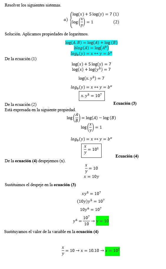 Hola buenas! Estoy ayudando a mi prima de 4 de la eso a prepararse los examenes de recuperacion que tiene y en matematicas voy un poco perdida y ella todavia mas. Os escribo para ver si añguien podria expñicarme la resolucion de estos sistemas de ecuaciones logaritmicas y exponenciales o al menos algunos de ellos porque estoy muy perdida en ellas. Muchas gracias.
