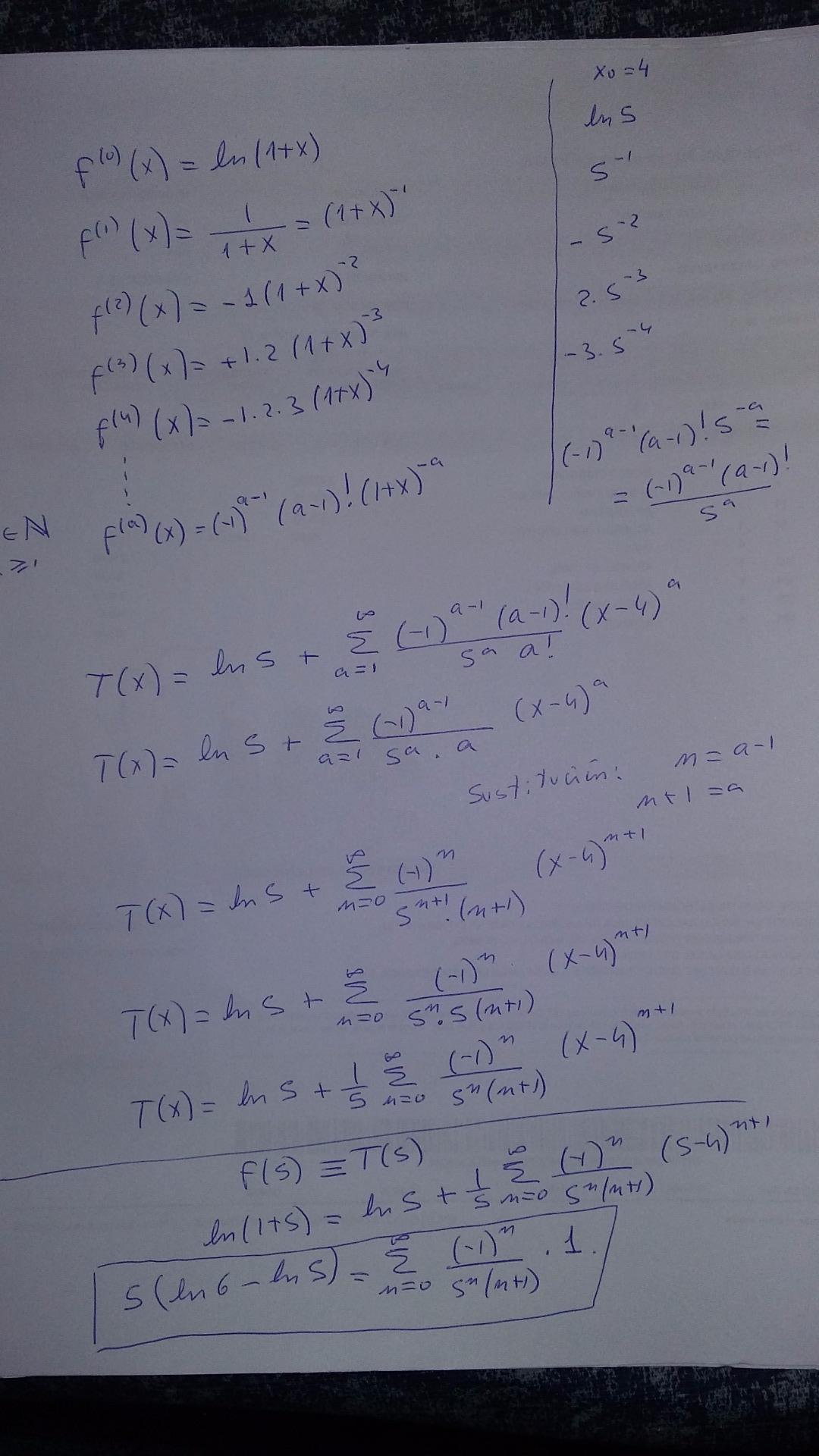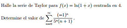 Observa que para determinar el valor de suma, hemos hecho la identificación del valor de la función para x = 5 con el valor que toma la serie para x = 5.