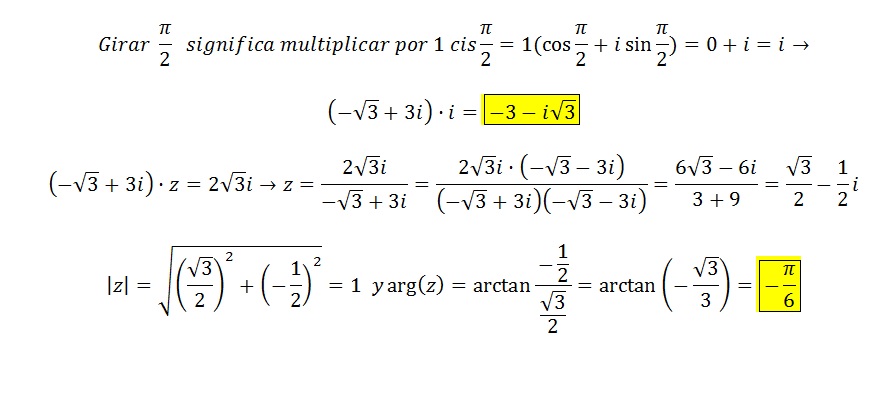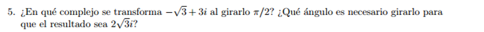 lo pase a forma polar y me quedo con un modulo de 2√3 y un argumento de -60. al sumarle 180 me quedo en 120. }despues no se como seguir y hallar ese giro. lei algo que pusieron por aca pero no lo logro entender al aplicarlo. gracias.