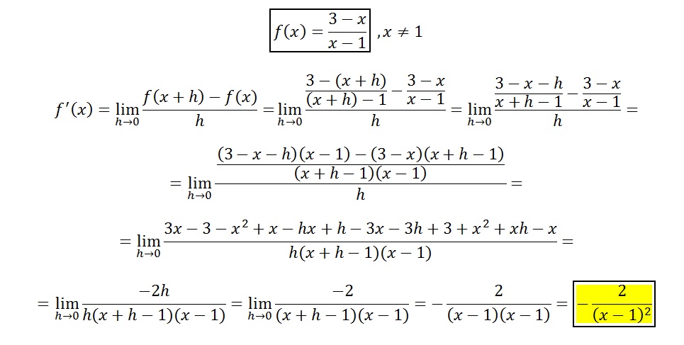Hola debo sacar la derivada por definición de la función 3-x/x-1 es correcto el procedimiento .gracias